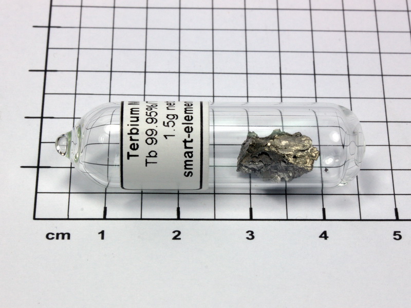Nice shiny piece of Terbium Metal in Ampoule under Argon. Due to its air sensitivity it is hard to find in this form. Get it for your collection!