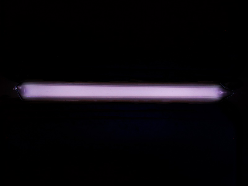 On the picture you see the illuminated ampoule. Connected to a 2000V/35kHz transformer via two metal plates. The transformers can be obtained on request.