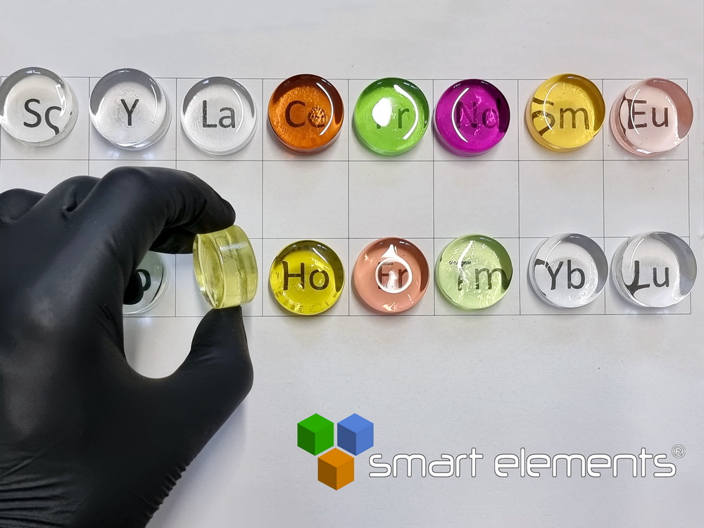 Under UV excitation, some of the ingots like Europium and Terbium glass show extremely high fluorescence. Others, like Samarium, Thulium and Dysprosium show weaker fluorescence due to optical quenching effects.