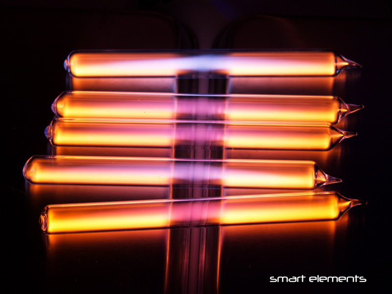 On the picture you see the illuminated ampoule. Connected to a 2000V/35kHz transformer via two metal plates. The transformers can be obtained on request.
