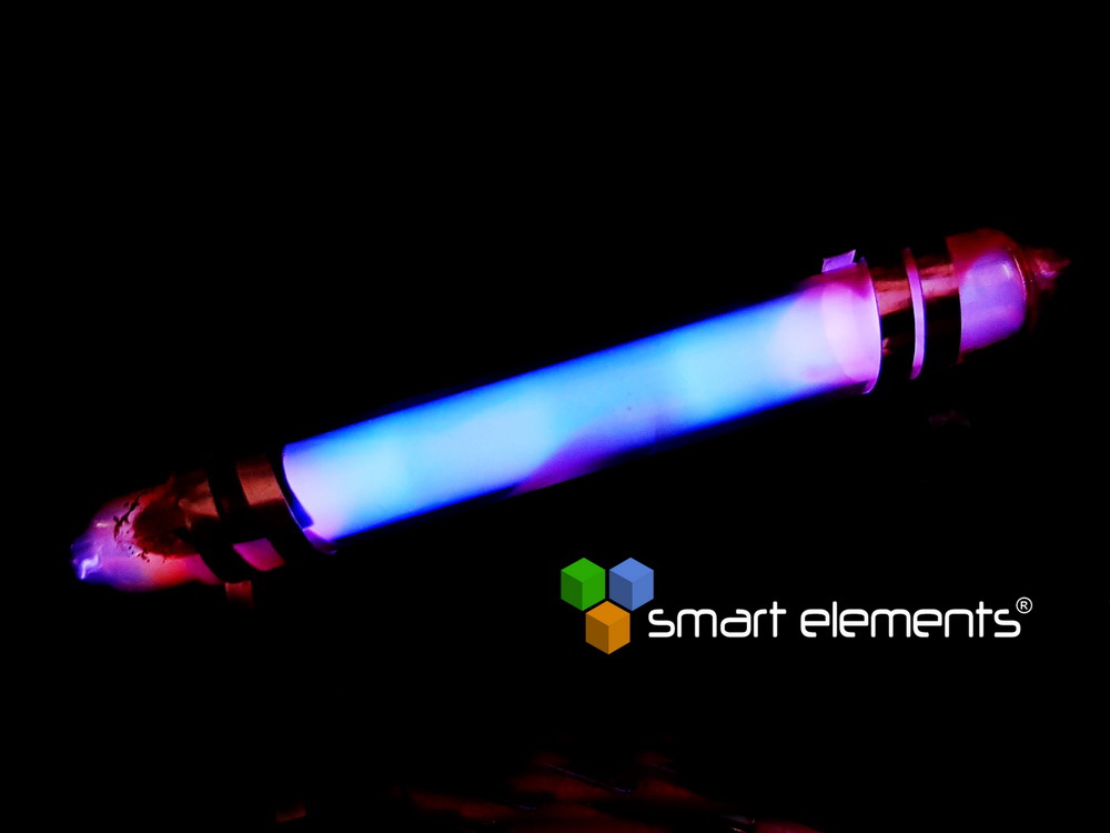 The tube contains sublimed selenium which evaporates during operation and keeps the necessary pressure to illuminate.