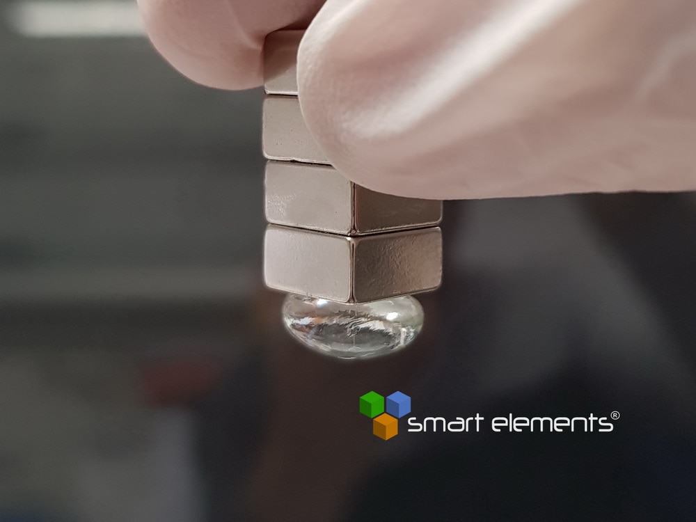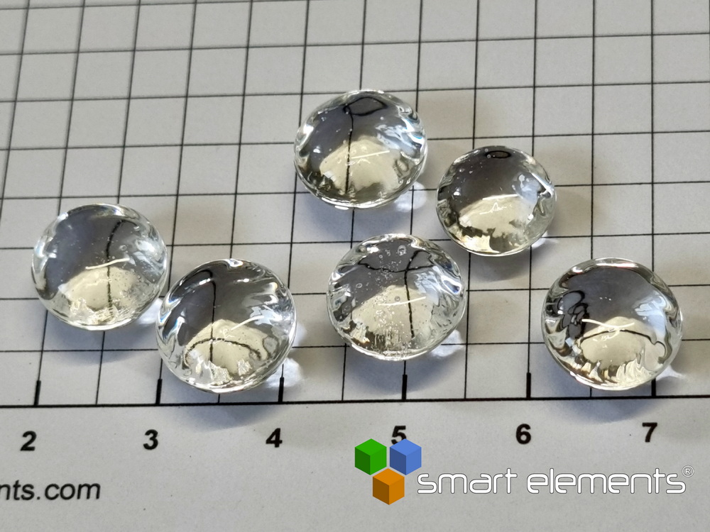 The magnetic Gadolinium phosphate glass bead is composed of approximately 34 mol% Gd3+ ions. It has a diameter of around 11 mm and weighs approximately 1.4-1.5 grams. This bead exhibits magnetic properties and can be attracted by strong neodymium magnets.