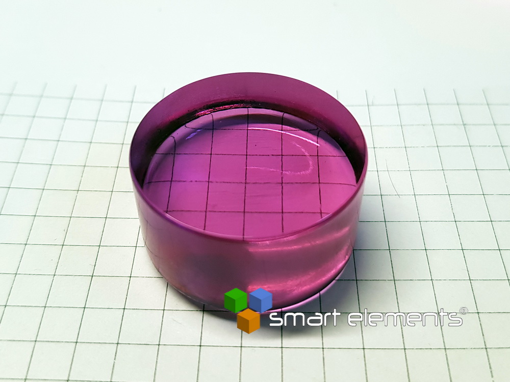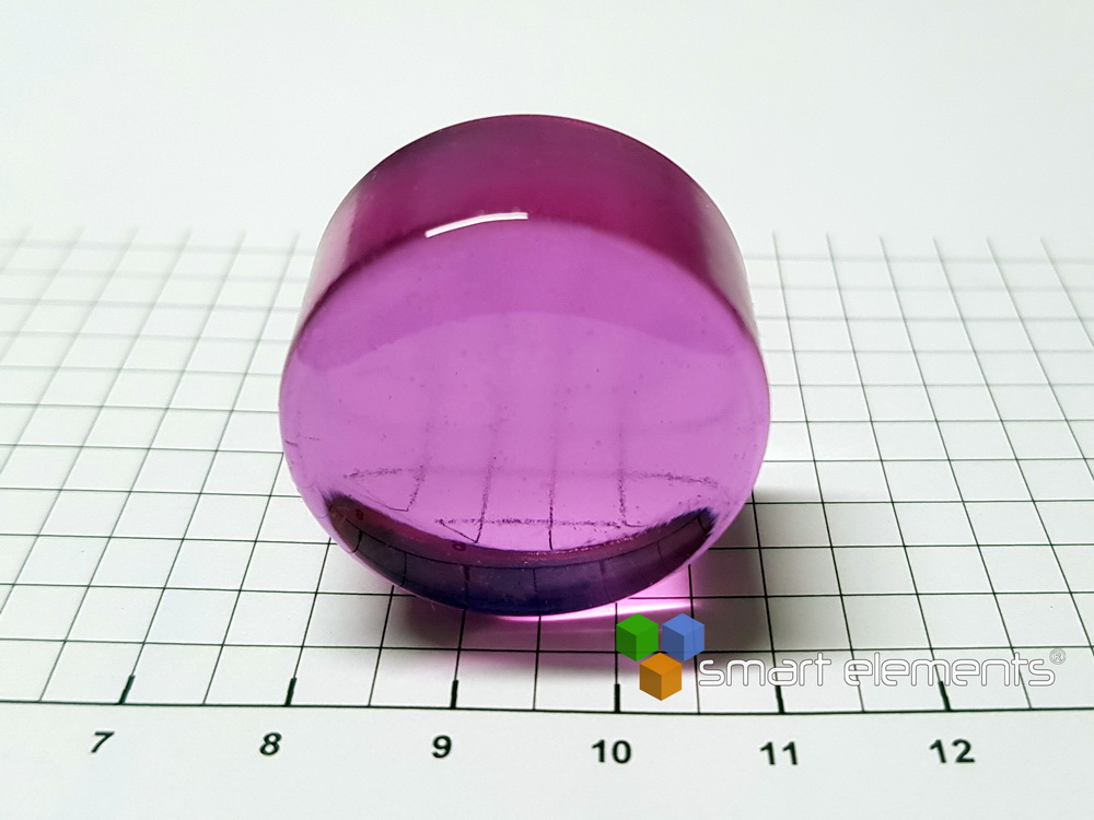 Diameter: 30mm – height ~ 15mm  – weight ~ 35 – 40 grams – Material: BaP: Nd3+ 5 mol%