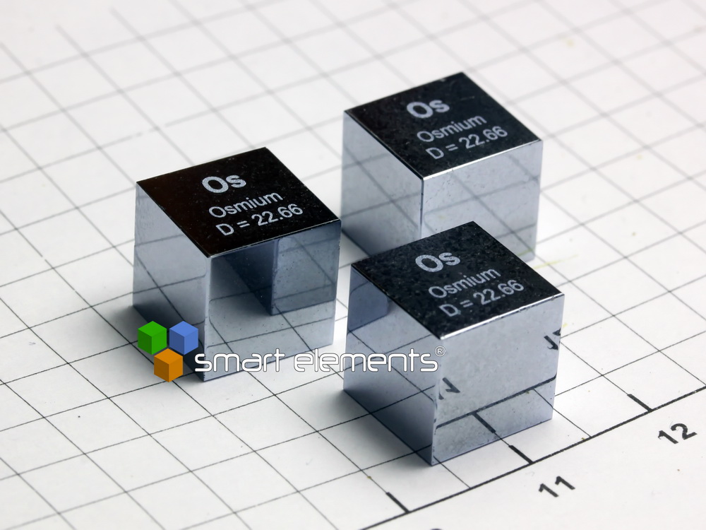 Osmium cubes require hot pressed (sintered) material rather than melted metal to avoid cracks and fissures at the grain boundaries. This must be carried out with great care and knowledge in order to prevent micropores on the surface that can release toxic OsO4 through oxidation reactions. Avoid Osmium cubes with mat and dull surface! Our cubes are tested and are safe!
